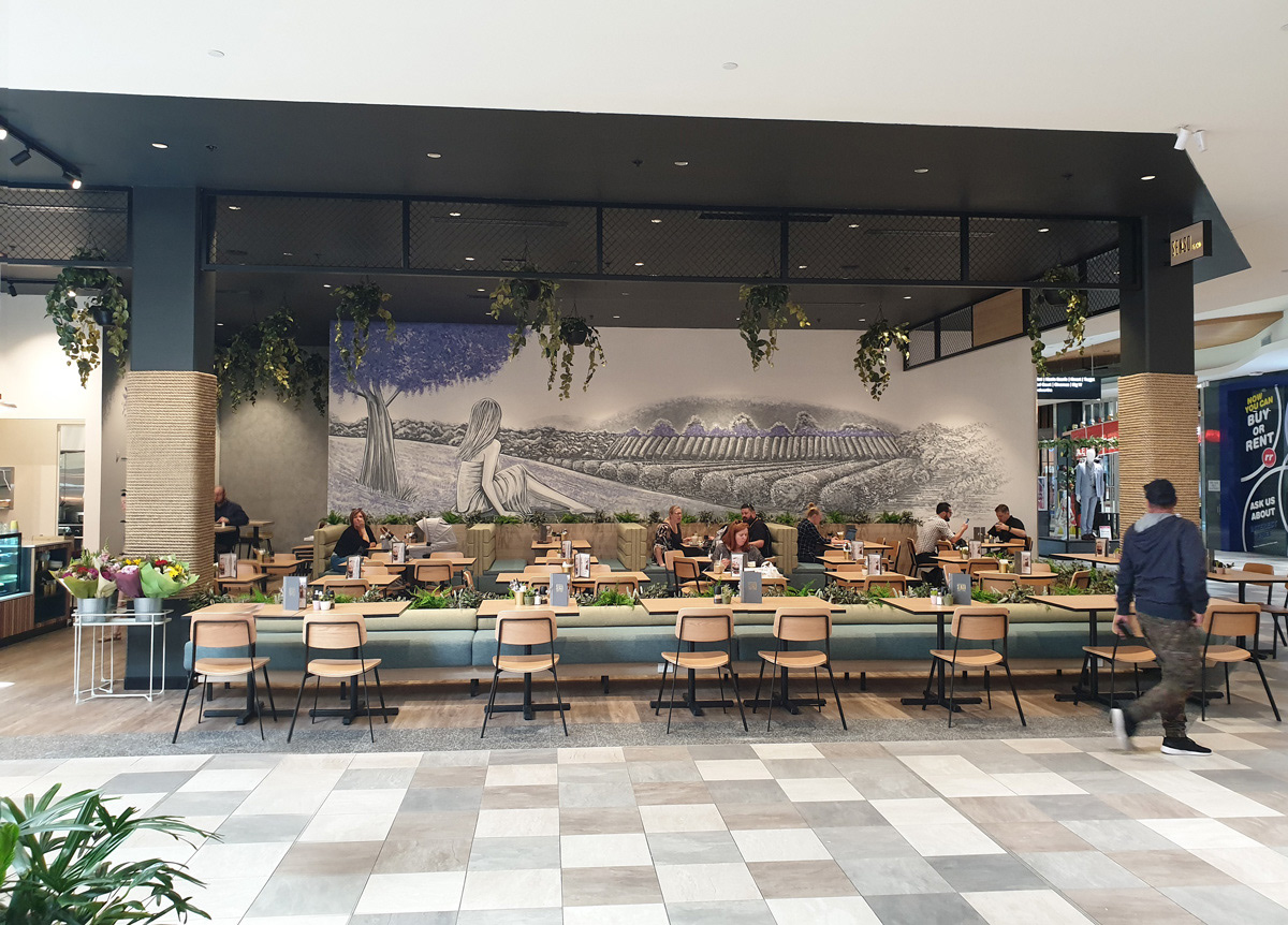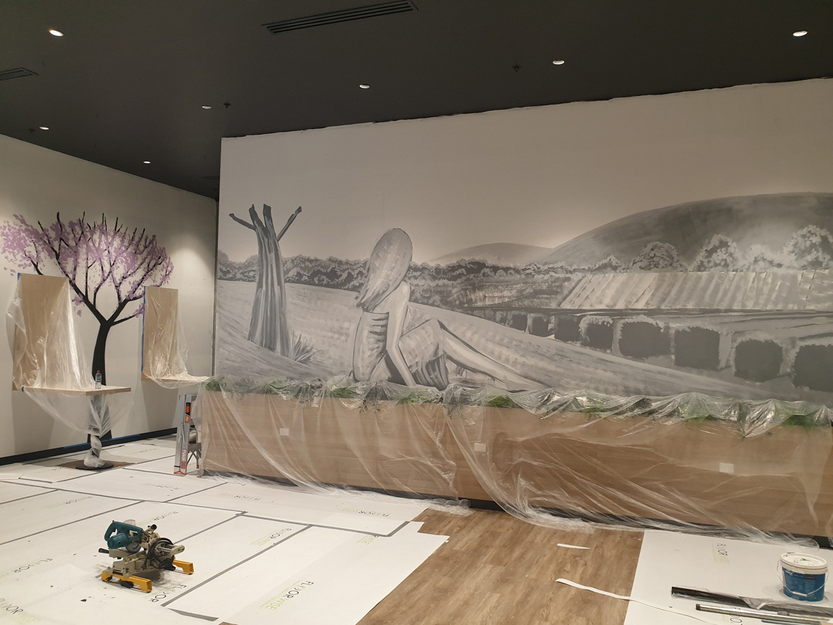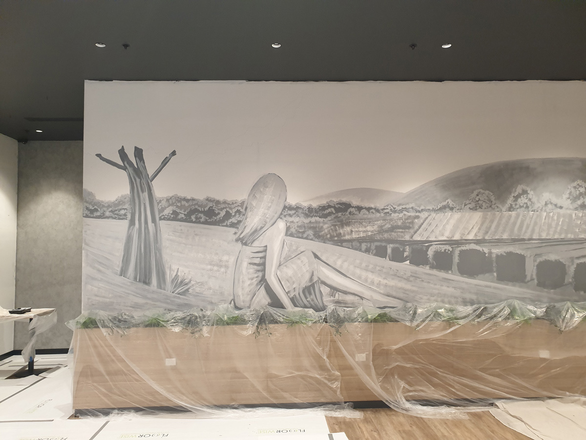 Mural at Senso Midland based off the surrounding Swan Valley and referenced from Jessica Truscott photography for the figure.